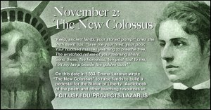 Emma Lazarus’s poem fell away into obscurity. Outspoken in life, her embarrassed family scrambled to fit her memory into a more demure and feminine ideal. In 1901, Lazarus’s friend Georgina Schuyler began an effort to memorialize Lazarus and her poem, which succeeded in 1903, sixteen years after her death, when a plaque bearing the text of the poem was put on the inner wall of the pedestal of the Statue of Liberty as a memorial. Another version is that the poem was rediscovered in a published catalog in a used bookstore and the reader campaigned to get the poem put on the statue.