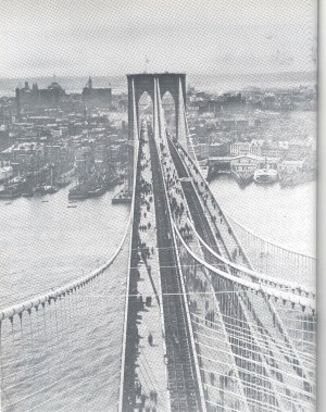 On May 24, 1883, the formal opening of the “Eighth Wonder of the World” took place. The bridge was illuminated by electricity for the occasion the first time this had ever been done. It was the biggest celebration New York had seen since the opening of the Erie Canal or the New York Water Works. Tiffany invitations were sent. Both cities went on holiday to the great joy of the school children. Fourteen tons of fireworks were set off. Bands played on excursion boats. The Atlantic Squadron steamed and sailed up the river. Harper’s Weekly reported “A festival …unique…New York has seldom seen….”